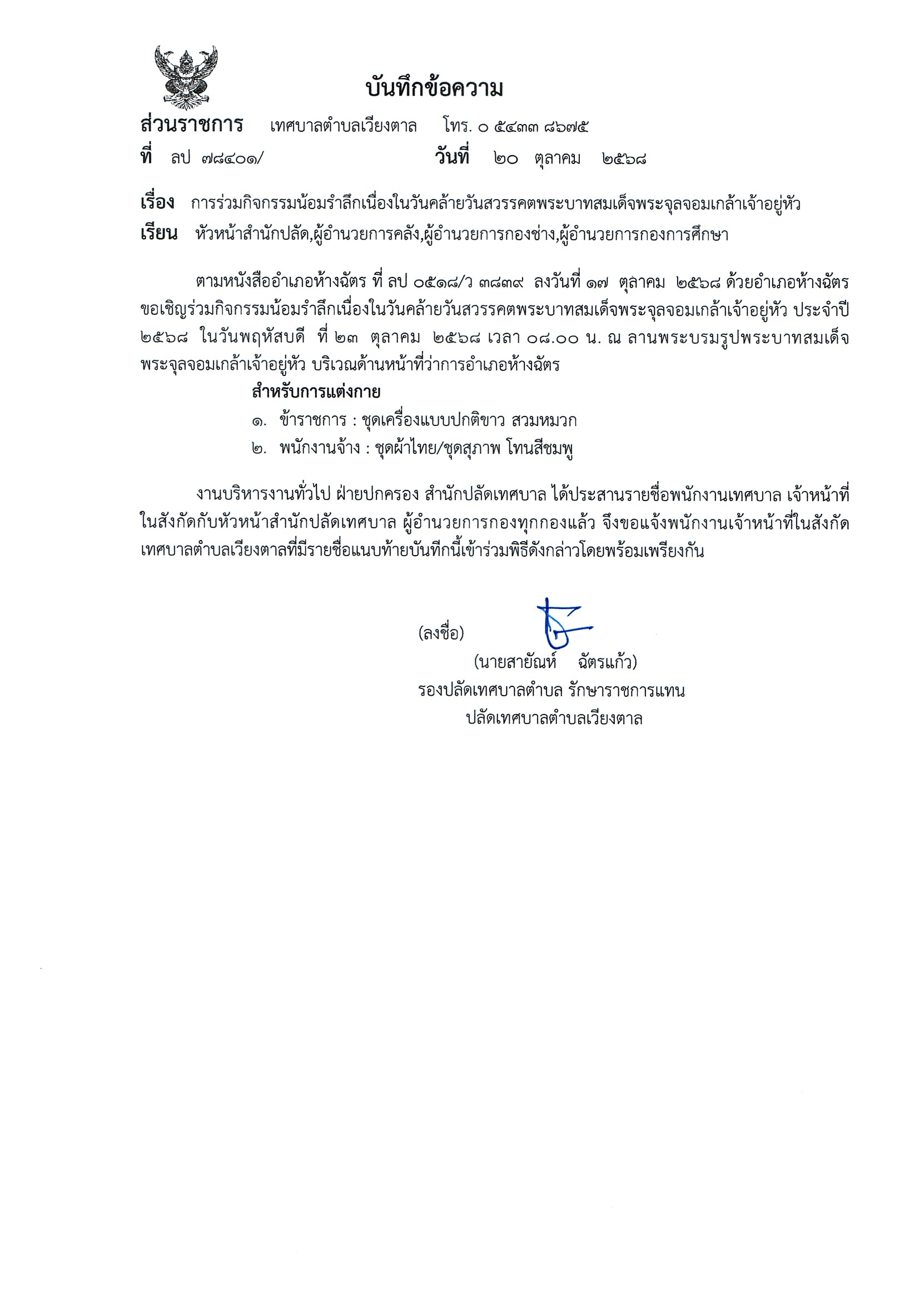 👑 เทศบาลตำบลเวียงตาล ร่วมกิจกรรมน้อมรำลึกในพระมหากรุณาธิคุณ รัชกาลที่ 5