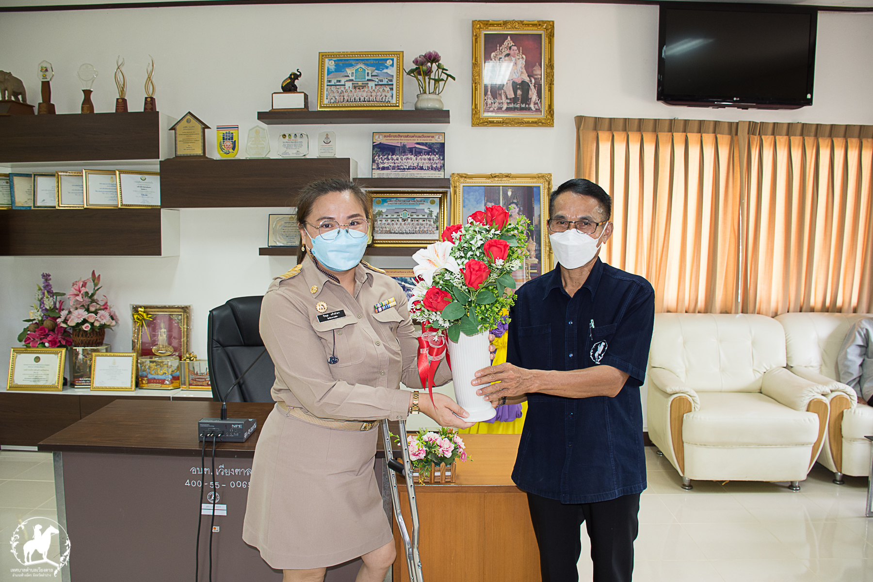 เมื่อวันจันทร์ที่ 3 เมษายน 2565 นายนิวัฒน์ ปะระมา นายกเทศมนตรีตำบลเวียงตาล ได้มอบหมายให้ นายนรินท์ จินะ รองนายกเทศมนตรีเทศบาลตำบลเวียงตาล นายวุฒิพล มณฑาทอง ปลัดเทศบาลตำบลเวียงตาล นางสุภาพร พุทธวงษ์ รองปลัดเทศบาลตำบลเวียงตาล หัวหน้าส่วนราชการ พนักงานเจ้าหน้าที่ ร่วมต้อนรับ นางสาววรางคณา ไชยเมืองชื่น พร้อมคณะที่ได้โอนย้ายมาจากเทศบาลตำบลสบปราบ อำเภอสบปราบ จังหวัดลำปาง เพื่อเข้ารับตำแหน่งผู้อำนวยการกองการศึกษาเทศบาลตำบลเวียงตาล ณ ห้องประชุม พญาเบิก ชั้น 2 ที่ทำการเทศบาลตำบลเวียงตาล#เวียงตาลแยกก่อนทิ้ง