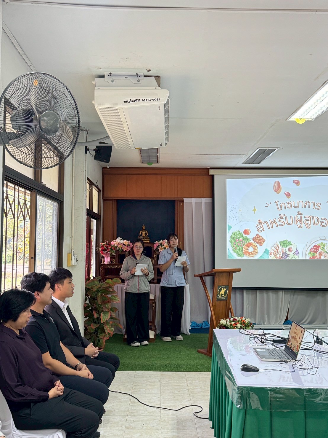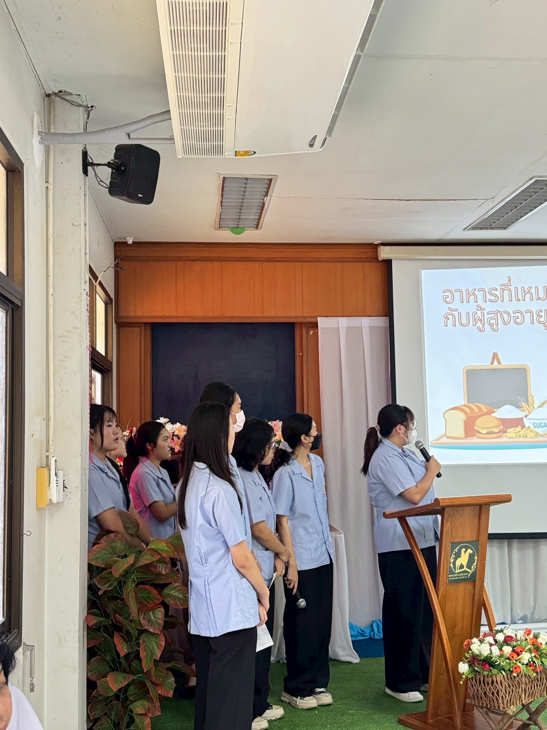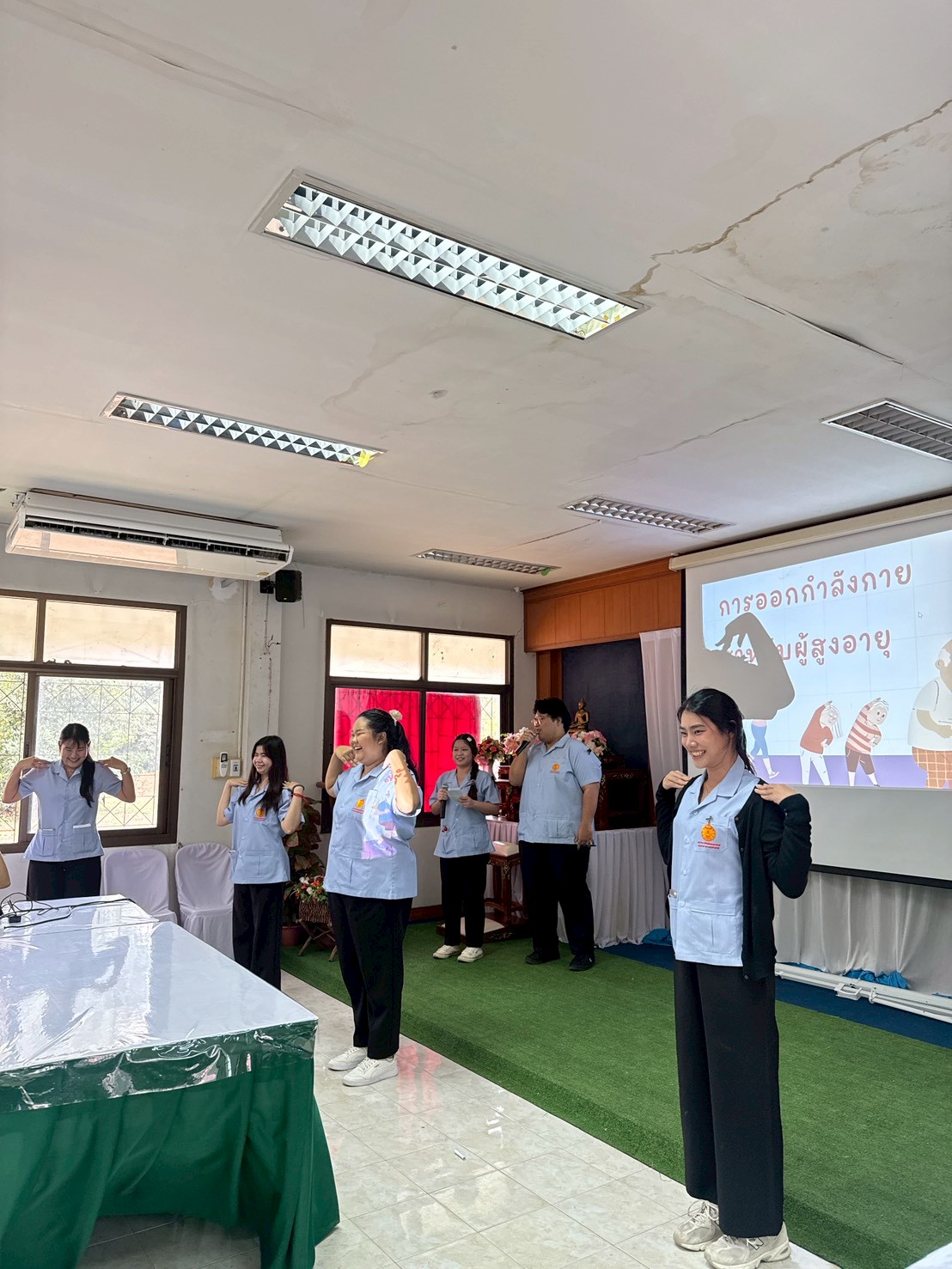 วัตถุประสงค์ของกิจกรรม: เพื่อให้นักศึกษาได้เสริมทักษะแก่ตนเองในการให้ความรู้ด้านวิทยาศาสตร์การบริการ และถ่ายทอดความรู้ความเข้าใจในหลักการสื่อสารกระบวนการขั้นตอน วิธีการให้ความรู้ด้านสุขศึกษาสำหรับการปฏิบัติงานในชุมชน รวมถึงการส่งเสริมให้ผู้สูงอายุสามารถนำความรู้ไปปรับใช้ในการทำงานและในชีวิตประจำวันอย่างเหมาะสม