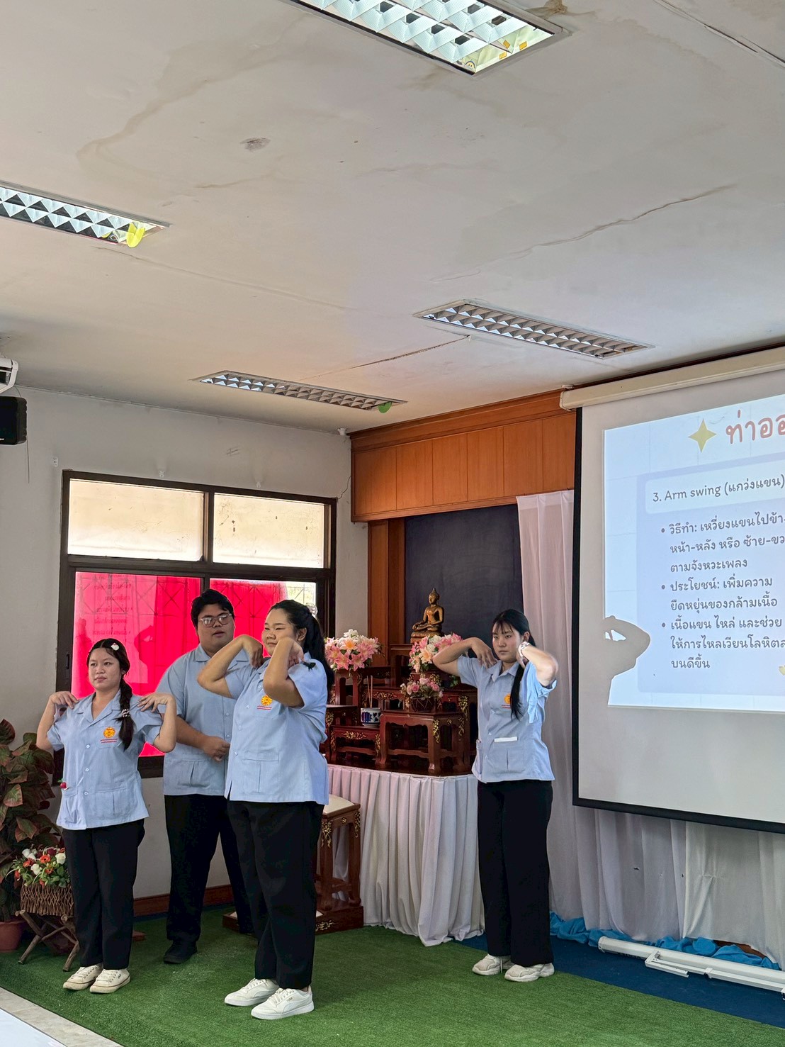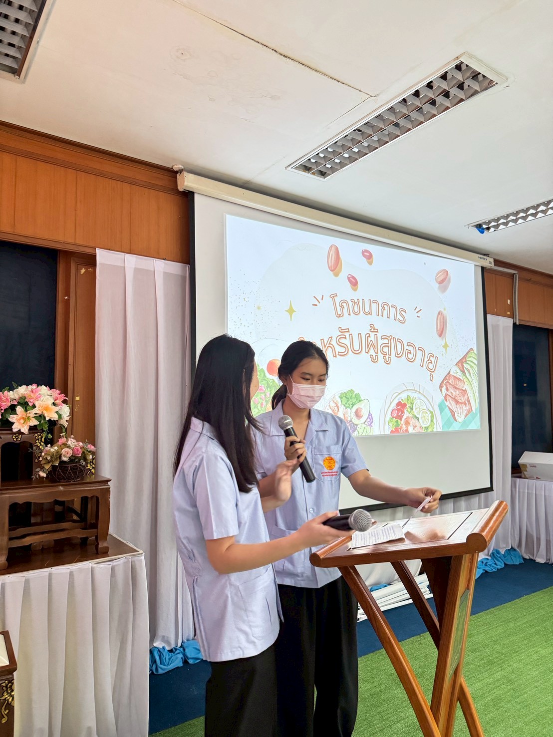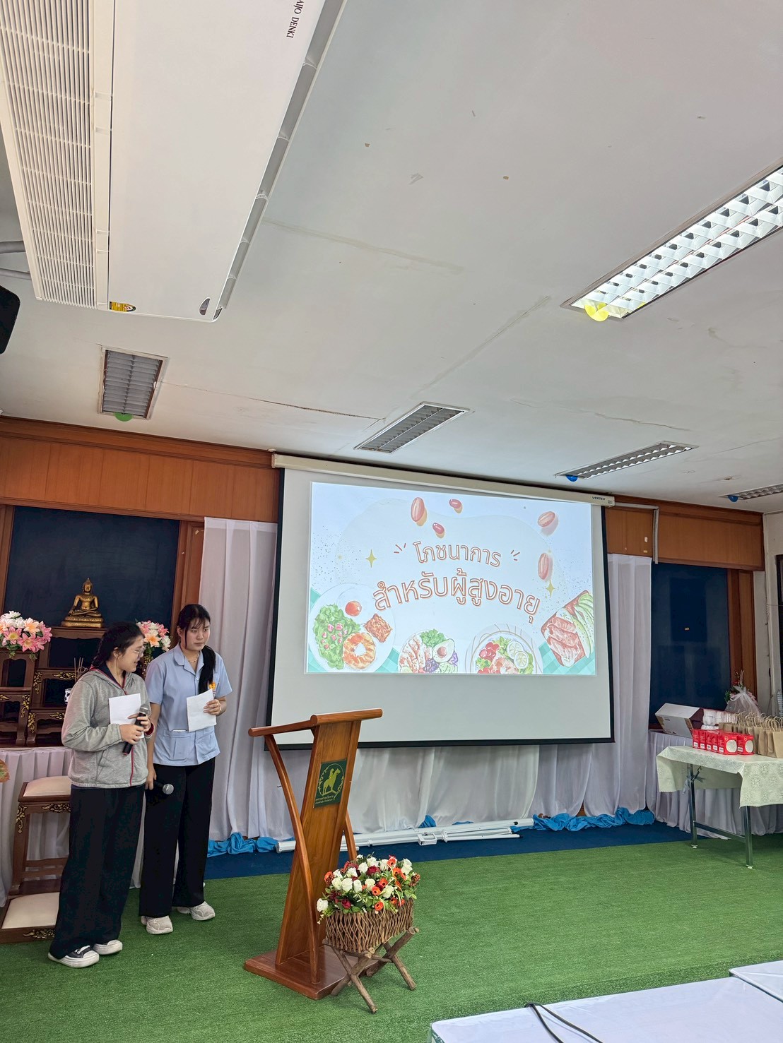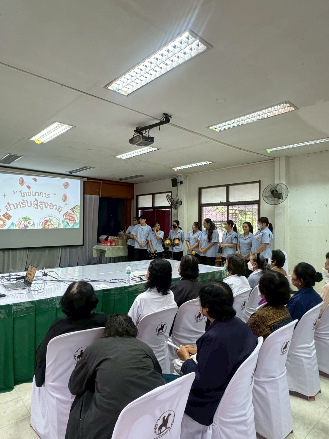 วัตถุประสงค์ของกิจกรรม: เพื่อให้นักศึกษาได้เสริมทักษะแก่ตนเองในการให้ความรู้ด้านวิทยาศาสตร์การบริการ และถ่ายทอดความรู้ความเข้าใจในหลักการสื่อสารกระบวนการขั้นตอน วิธีการให้ความรู้ด้านสุขศึกษาสำหรับการปฏิบัติงานในชุมชน รวมถึงการส่งเสริมให้ผู้สูงอายุสามารถนำความรู้ไปปรับใช้ในการทำงานและในชีวิตประจำวันอย่างเหมาะสม